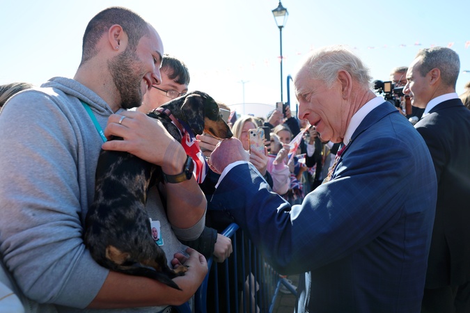 BARROW-IN-FURNESS, ENGLAND - SEPTEMBER 22: King Charles III meets member of the public in Barrow's town centre, on September 22, 2025 in Barrow-in-Furness, England., Credit:Chris Jackson / Avalon