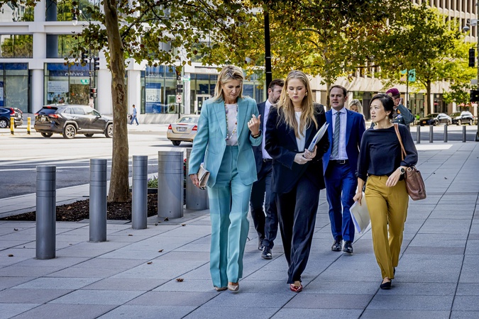 Washington, The Netherlands, 2025-09-22 16:55:02WASHINGTON, September 22, 2025. Queen Máxima will visit Washington, DC, on Monday, September 22, as the United Nations Secretary-General's Special Advocate for Financial Security (UNSGSA). Princess Amalia will be present throughout the visit to observe Queen Máxima's UN work. PHOTO: NLBeeld. Pictured: In Washington, DC, Queen Máxima speaks with various organizations., Credit:Avalon