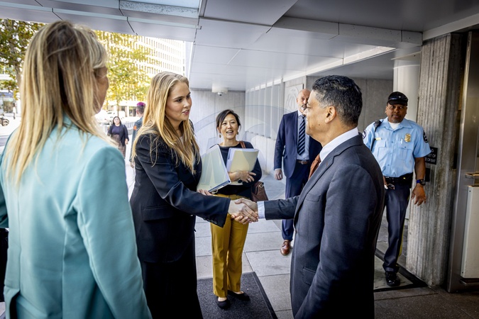 Washington, The Netherlands, 2025-09-22 16:55:12WASHINGTON, September 22, 2025. Queen Máxima will visit Washington, DC, on Monday, September 22, as the United Nations Secretary-General's Special Advocate for Financial Security (UNSGSA). Princess Amalia will be present throughout the visit to monitor Queen Máxima's UN work. PHOTO: NLBeeld. Pictured: In Washington, DC, Queen Máxima speaks with various organizations., Credit:Avalon