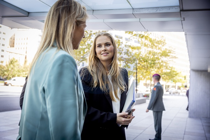 Washington, The Netherlands, 2025-09-22 16:55:15WASHINGTON, September 22, 2025. Queen Máxima will visit Washington, DC, on Monday, September 22, as the United Nations Secretary-General's Special Advocate for Financial Security (UNSGSA). Princess Amalia will be present throughout the visit to monitor Queen Máxima's UN work. PHOTO: NLBeeld. Pictured: In Washington, DC, Queen Máxima speaks with various organizations., Credit:Avalon