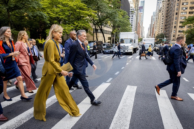 New York, The Netherlands, 2025-09-23 13:58:18NEW YORK, 23-09-2025. Queen Máxima will visit Washington, DC, on Monday, September 22, as the United Nations Secretary-General's Special Advocate for Financial Security (UNSGSA). Princess Amalia will be present throughout the visit to observe Queen Máxima's UN work. PHOTO: NLBeeld. Pictured: In New York, Queen Máxima attends the opening of the 80th UN General Assembly. During her time in New York, she will also hold bilateral consultations with government representatives of countries and development organizations on improving financial security., Credit:Avalon
