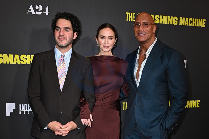 Benny Safdie, Emily Blunt and Dwayne Johnson attends "The Smashing Machine" UK Special Screening at BAFTA in London, England. UK. Wednesday 24th September 2025, Credit:James Warren / Avalon