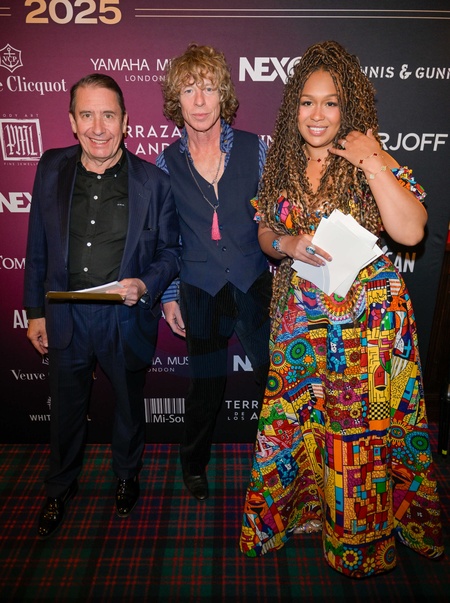 Jools Holland, Simon Bartholomew and Rebecca Ferguson at Boisdale Music Awards 2025, Boisdale Restaurant, Canary Wharf. London, Credit:Jules Annan / Avalon