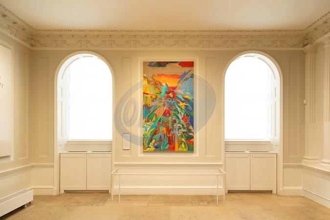 Rachel Jones (b.1991) STRUCK (2025), oil sticks and oil pastel on linen, courtesy of the artist. The Courtauld Gallery today unveiled two new site-specific commissions by acclaimed artist Rachel Jones. The new paintings, titled STRUCK, are on view in The John Browne Entrance Hall and the adjacent Ticketing Hall.The large-scale, brightly coloured abstract works were created especially for The Courtauld Gallery. They are intended to playfully disrupt the formality of the grand 18th century neoclassical building, based in the North Wing of Somerset House in central London, and to open conversations with paintings in the Gallery's collection., Credit:Fergus Carmichael/The Courtauld / Avalon
