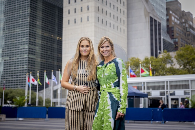 New York, The Netherlands, 2025-09-25 21:08:11NEW YORK, September 25, 2025. Queen Máxima will visit Washington, D.C., on Monday, September 22, as the United Nations Secretary-General's Special Advocate for Financial Security (UNSGSA). Princess Amalia will be present throughout the visit to observe Queen Máxima's UN work. PHOTO: NLBeeld. Pictured: Queen Máxima and Princess Amalia pose at the United Nations building in New York., Credit:Avalon
