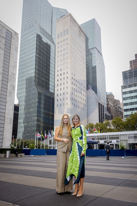Queen Máxima and Princess Amalia pose at the UN building, New York, The Netherlands