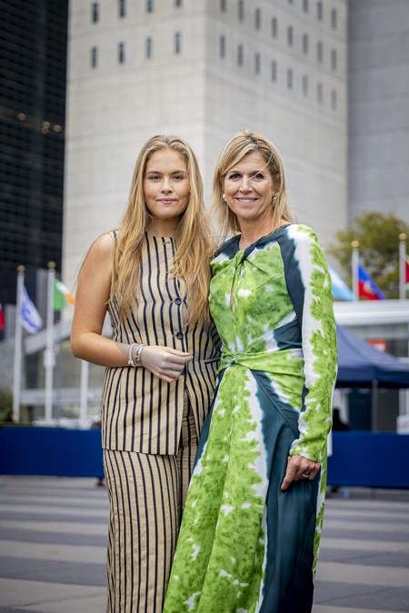 New York, The Netherlands, 2025-09-25 21:08:04NEW YORK, September 25, 2025. Queen Máxima will visit Washington, DC, on Monday, September 22, as the United Nations Secretary-General's Special Advocate for Financial Security (UNSGSA). Princess Amalia will be present throughout the visit to observe Queen Máxima's UN work. PHOTO: NLBeeld. Pictured: Queen Máxima and Princess Amalia pose at the United Nations building in New York., Credit:Avalon