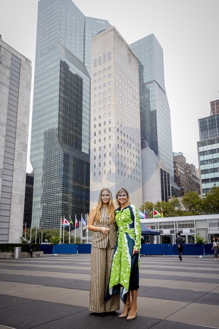 New York, The Netherlands, 2025-09-25 21:08:06NEW YORK, September 25, 2025. Queen Máxima will visit Washington, DC, on Monday, September 22, as the United Nations Secretary-General's Special Advocate for Financial Security (UNSGSA). Princess Amalia will be present throughout the visit to observe Queen Máxima's UN work. PHOTO: NLBeeld. Pictured: Queen Máxima and Princess Amalia pose at the United Nations building in New York., Credit:Avalon
