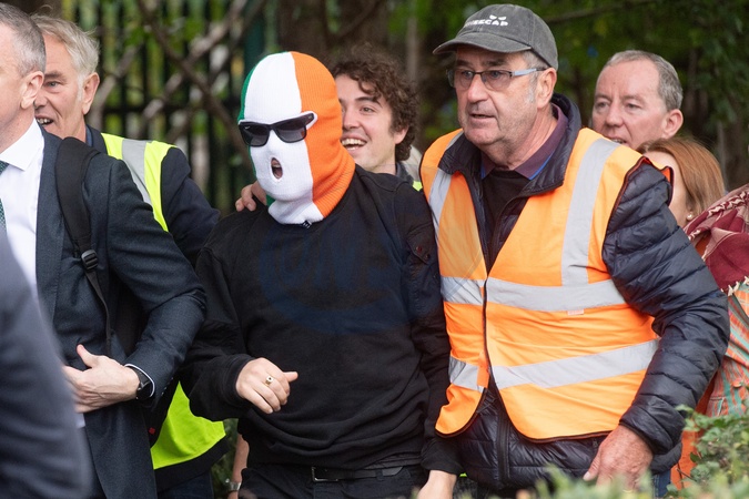 Mo Chara (Liam Óg Ó hAnnaidh) of Northern Irish trio Kneecap (identified by the ring on his right finger) arrives at Woolwich Crown Court in London, England, UK on Friday 26 September, 2025., Credit:Justin Ng / Avalon