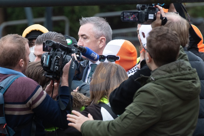Mo Chara (Liam Óg Ó hAnnaidh) of Northern Irish trio Kneecap (identified by the ring on his right finger) arrives at Woolwich Crown Court in London, England, UK on Friday 26 September, 2025., Credit:Justin Ng / Avalon