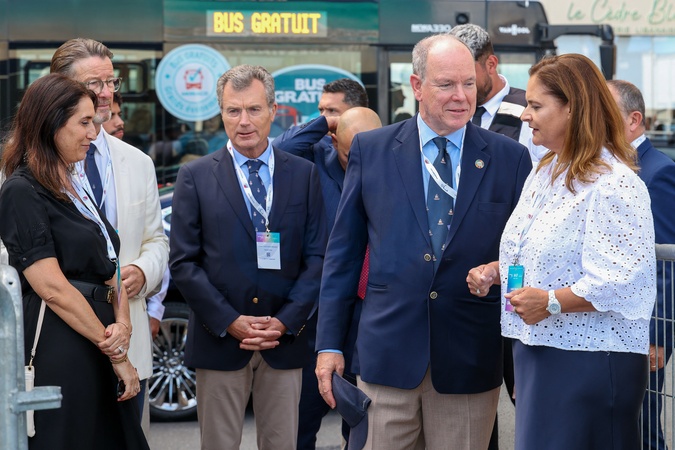 No Tabloïds - Carole Pichot, chef de l'exploitation du Monaco Yacht Show, le prince Albert II de Monaco et Gaëlle Tallarida, directrice générale du Monaco Yacht Show du salon international de superyachts "Monaco Yacht Show 2025", à Monte-Carlo, Monaco, le 25 septembre 2025. © Claudia Albuquerque/Bestimage No Tabloïds - Only for OK, Hello, Grazia - No Mail Online - Prince Albert II of Monaco attends the Monaco Yacht Show in Monte Carlo, Monaco, on September 25, 2025.