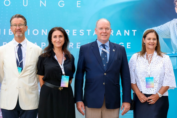 No Tabloïds - Le prince Albert II de Monaco pose avec Carole Pichot, chef de l'exploitation du Monaco Yacht Show et Gaëlle Tallarida, directrice générale du Monaco Yacht Show du salon international de superyachts "Monaco Yacht Show 2025", à Monte-Carlo, Monaco, le 25 septembre 2025. © Claudia Albuquerque/Bestimage No Tabloïds - Only for OK, Hello, Grazia - No Mail Online - Prince Albert II of Monaco attends the Monaco Yacht Show in Monte Carlo, Monaco, on September 25, 2025.
