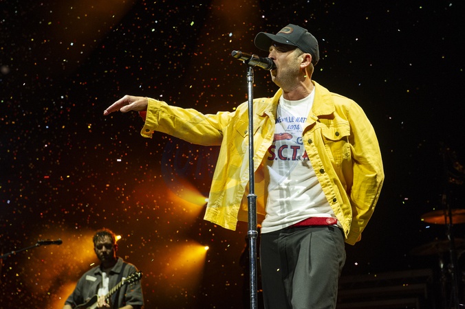 One Republic perform at O2 Arena in London on 26th September 2025.Ryan Tedder (lead vocals, piano), Zach Filkins (guitar, viola), Drew Brown (guitar), Brent Kutzle (bass, cello), Eddie Fisher (drums), Brian Willett (keyboards, percussion, violin)., Credit:Zoran Veselinovic / Avalon