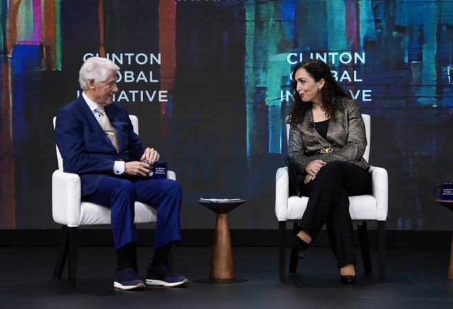 President Bill Clinton, Vjosa Osmani President of Kosovo during the 2025 Clinton Global Initiative, held at the New York Hilton in New York City, Thursday, September 25, 2025., Credit:Jennifer Graylock-Graylock.com / Avalon