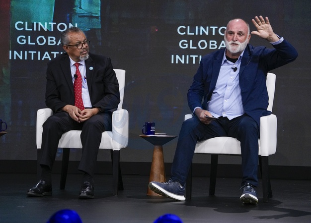Tedros Adhanom Ghebreyesus Director General World Health Organization, Jose Andres during the 2025 Clinton Global Initiative, held at the New York Hilton in New York City, Thursday, September 25, 2025., Credit:Jennifer Graylock-Graylock.com / Avalon