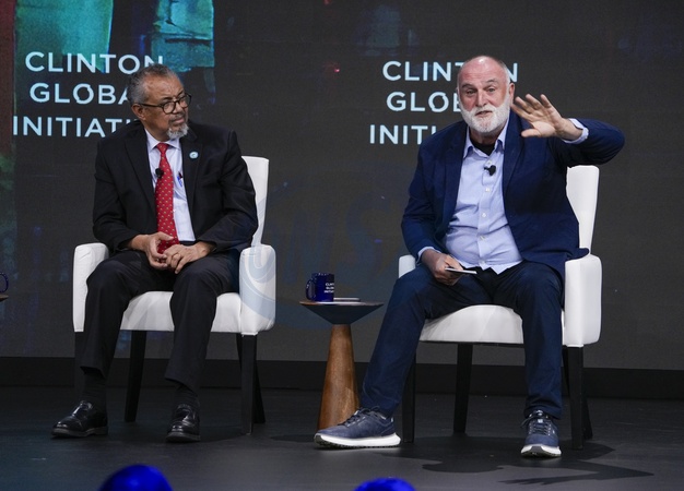 Tedros Adhanom Ghebreyesus Director General World Health Organization, Jose Andres during the 2025 Clinton Global Initiative, held at the New York Hilton in New York City, Thursday, September 25, 2025., Credit:Jennifer Graylock-Graylock.com / Avalon