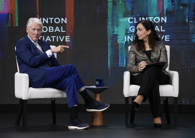 President Bill Clinton, Vjosa Osmani President of Kosovo during the 2025 Clinton Global Initiative, held at the New York Hilton in New York City, Thursday, September 25, 2025., Credit:Jennifer Graylock-Graylock.com / Avalon