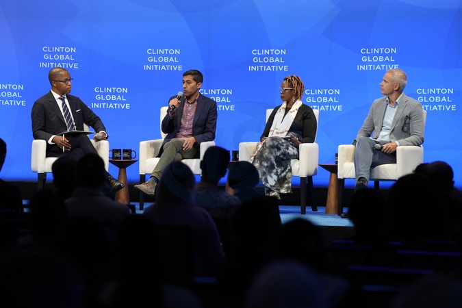 Jonathan Capehart MSNBC, Chirag Badlani Alphawood Foundation, Mukami Marete Uhai Eashri, Ken Janssens Open for Business during the 2025 Clinton Global Initiative, held at the New York Hilton in New York City, Thursday, September 25, 2025., Credit:Jennifer Graylock-Graylock.com / Avalon