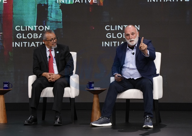 Tedros Adhanom Ghebreyesus Director General World Health Organization, Jose Andres during the 2025 Clinton Global Initiative, held at the New York Hilton in New York City, Thursday, September 25, 2025., Credit:Jennifer Graylock-Graylock.com / Avalon