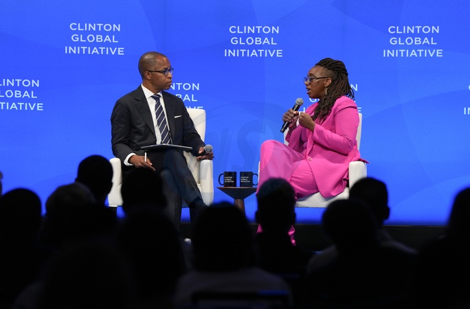Jonathan Capehart MSNBC, Kelley Robinson President Human Rights Campaign during the 2025 Clinton Global Initiative, held at the New York Hilton in New York City, Thursday, September 25, 2025., Credit:Jennifer Graylock-Graylock.com / Avalon