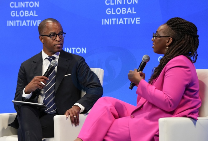 Jonathan Capehart MSNBC, Kelley Robinson President Human Rights Campaign during the 2025 Clinton Global Initiative, held at the New York Hilton in New York City, Thursday, September 25, 2025., Credit:Jennifer Graylock-Graylock.com / Avalon