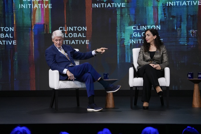President Bill Clinton, Vjosa Osmani President of Kosovo during the 2025 Clinton Global Initiative, held at the New York Hilton in New York City, Thursday, September 25, 2025., Credit:Jennifer Graylock-Graylock.com / Avalon