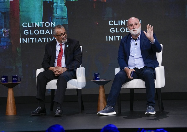 Tedros Adhanom Ghebreyesus Director General World Health Organization, Jose Andres during the 2025 Clinton Global Initiative, held at the New York Hilton in New York City, Thursday, September 25, 2025., Credit:Jennifer Graylock-Graylock.com / Avalon