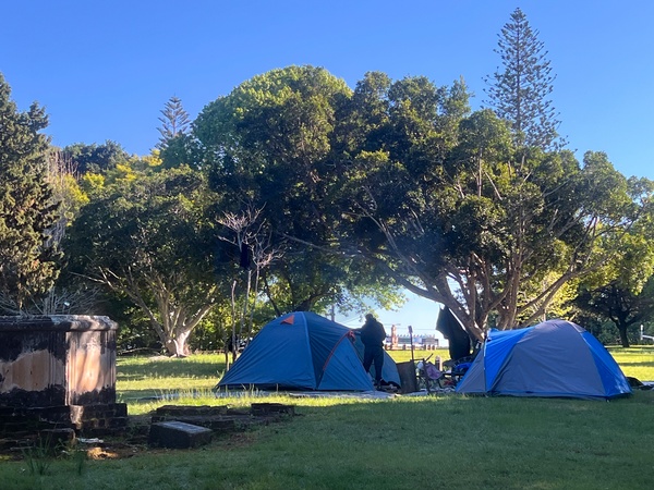 Australian homeless tents at Port Macquarie Historic Cemetery NSW Australia