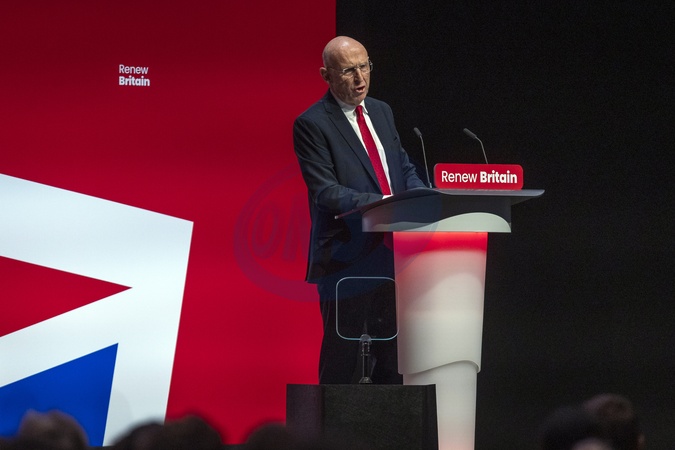 Liverpool, UK – 29 September 2025. John Healey MP, Defence Secretary, speaks at the Labour Party Conference on the second day of proceedings., Credit:Abdullah Bailey / Avalon