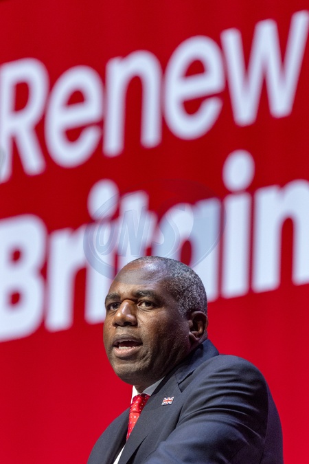 Liverpool, UK — 29 September 2025. David Lammy MP, Deputy Prime Minister, delivers his speech to delegates on Day 2 of the Labour Party Conference., Credit:Abdullah Bailey / Avalon