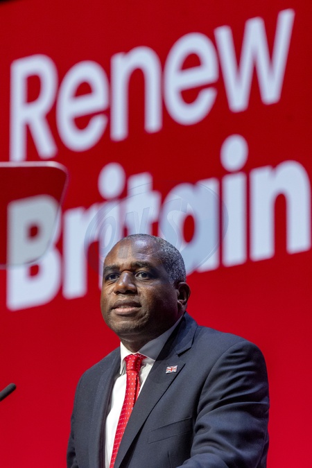 Liverpool, UK — 29 September 2025. David Lammy MP, Deputy Prime Minister, delivers his speech to delegates on Day 2 of the Labour Party Conference., Credit:Abdullah Bailey / Avalon