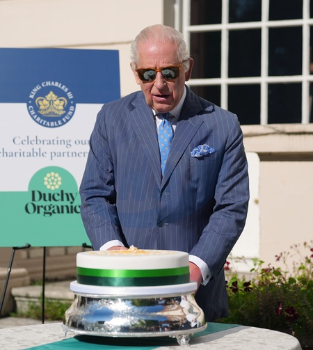 King Charles III cuts a cake - made from Duchy Organic ingredients - during a reception for King Charles III Charitable Fund (KCCF), at Clarence House, London, for representatives from charities and organisations that have benefited from the fund via its partnership with Waitrose Duchy Organic. Picture date: Tuesday September 30, 2025., Credit:Yui Mok / Avalon