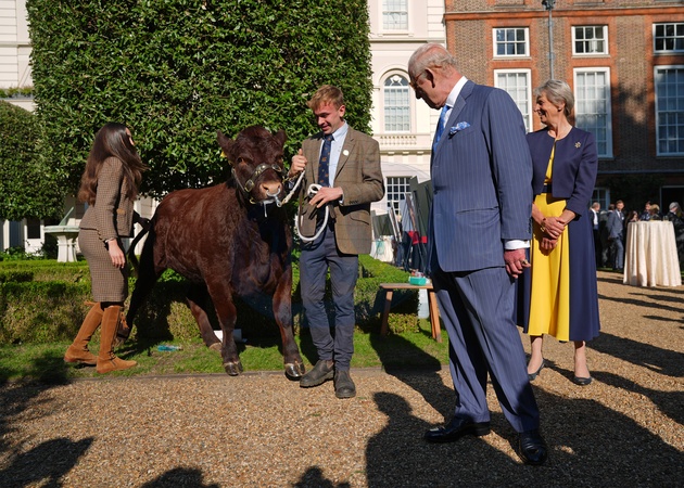 King Charles III meets Poppy, a pedigree Sussex breeding cow, during a reception for King Charles III Charitable Fund (KCCF), at Clarence House, London, for representatives from charities and organisations that have benefited from the fund via its partnership with Waitrose Duchy Organic. Picture date: Tuesday September 30, 2025., Credit:Yui Mok / Avalon