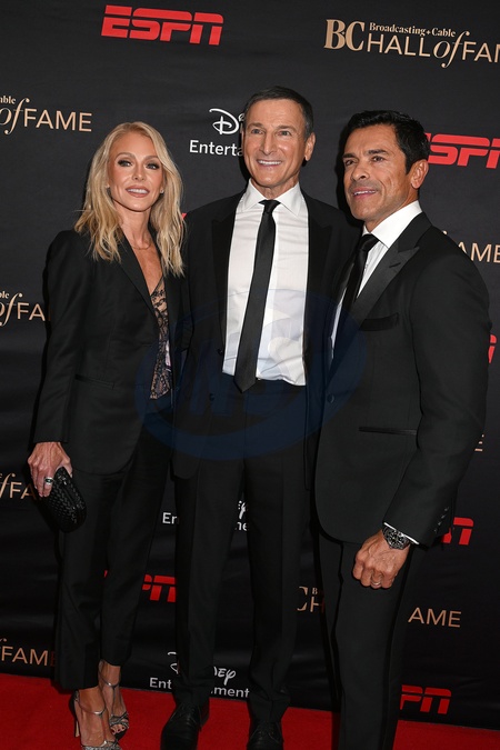 Kelly Ripa, Michael Gelman and Mark Consuelos attend The 2025 Broadcasting+Cable Hall of Fame Awards 33rd Anniversary Gala at Ziegfeld Ballroom on September 30,2025 in New York, New York, USA., Credit:Robin Platzer / Avalon