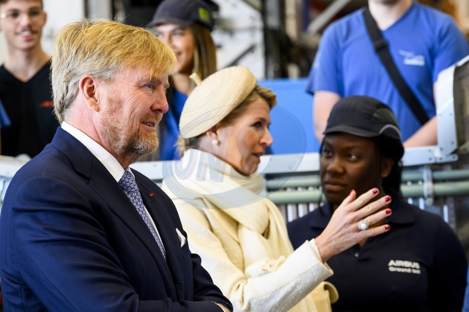 Toulouse, The Netherlands, 2025-10-01 11:29:56TOULOUSE, October 1, 2025, Airbus. King Willem-Alexander and Her Queen Máxima are on a working visit to the Occitanie region in France. They are visiting the city of Toulouse. PHOTO: NLBeeld/Patrick van Emst. Pictured: Visit Airbus Lycee / Visit Airbus A350 Assembly Line., Credit:Avalon