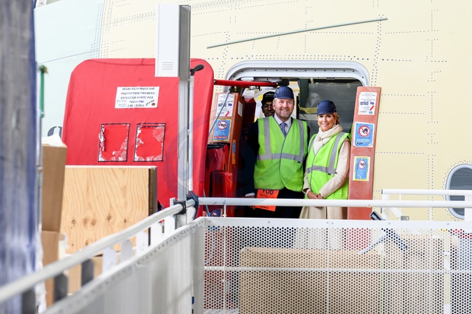 Toulouse, The Netherlands, 2025-10-01 12:15:40TOULOUSE, October 1, 2025, Airbus. King Willem-Alexander and Her Queen Máxima are on a working visit to the Occitanie region in France. They are visiting the city of Toulouse. PHOTO: NLBeeld/Patrick van Emst. Pictured: Visit Airbus Lycee / Visit Airbus A350 Assembly Line., Credit:Avalon