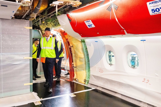 Toulouse, The Netherlands, 2025-10-01 12:04:05TOULOUSE, October 1, 2025, Airbus. King Willem-Alexander and Her Queen Máxima are on a working visit to the Occitanie region in France. They are visiting the city of Toulouse. PHOTO: NLBeeld/NLBeeld/POOL/Mischa Schoemaker. Pictured: Visit Airbus Lycee / Visit Airbus A350 Assembly Line., Credit:Avalon