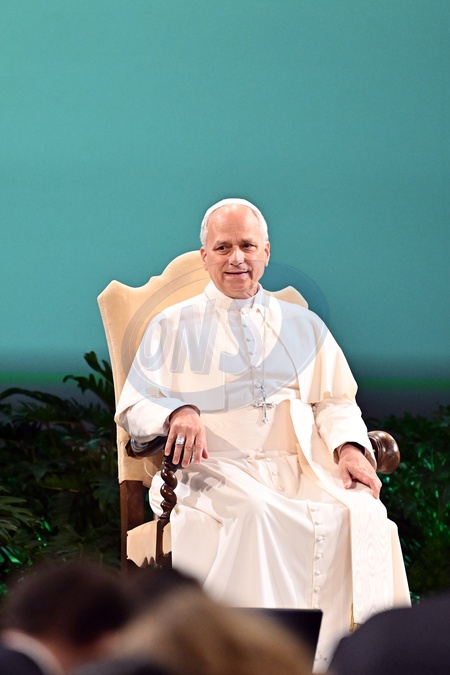 Pope Leo XIV during the International Conference "Raising Hope for Climate Justice”, Castel Gandolfo, Italy 01 Oct 2025, Credit:Maria Laura Antonelli / Avalon