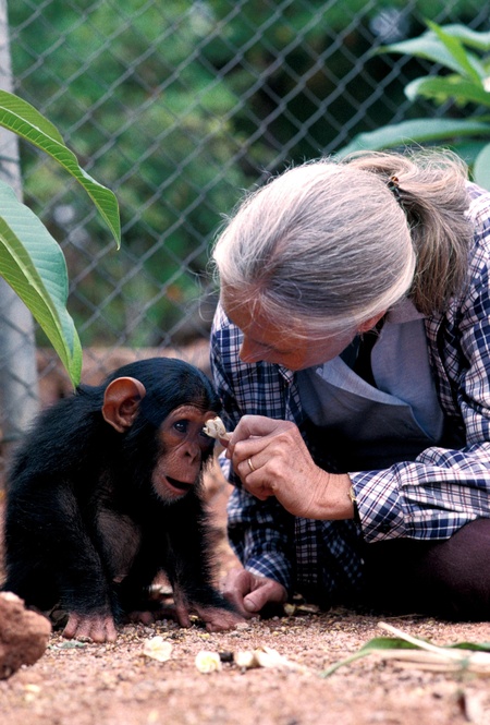 Jane Goodall Personality Jane Goodall with orphaned Chimpanzee Pan troglodytes