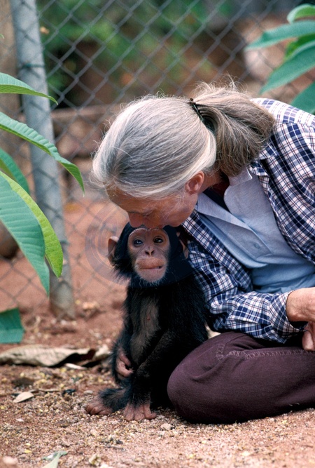Jane Goodall Personality Jane Goodall with orphaned Chimpanzee Pan troglodytes