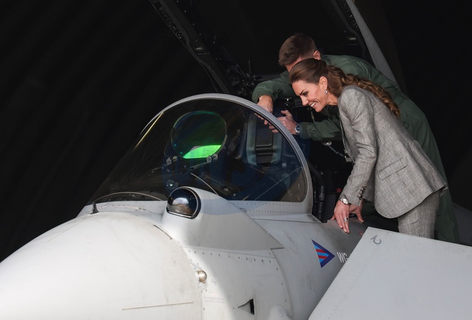 02/10/2025. Coningsby, UK. The Princess of Wales, Royal Honorary Air Commodore, RAF Coningsby during her first visit to the station. Her Royal Highness received an overview of the work of RAF Coningsby on recent operations, including overseas operations to Poland in support of NATO. Her Royal Highness then met a cross-section of Quick Reaction Alert (QRA) personnel and viewed a Quick Reaction Alert Typhoon aircraft. Finally, Her Royal Highness visited a communal space called the ‘Lounge' where The Princess engaged with members of RAF Coningsby's Welfare Team, and a cross-section of RAF Coningsby personnel including aviators from Junior Ranks, to hear about their roles and experiences on site., Credit:Pete Maclaine / Avalon