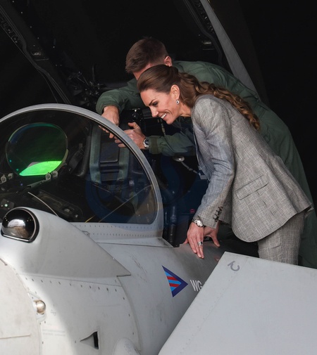02/10/2025. Coningsby, UK. The Princess of Wales, Royal Honorary Air Commodore, RAF Coningsby during her first visit to the station. Her Royal Highness received an overview of the work of RAF Coningsby on recent operations, including overseas operations to Poland in support of NATO. Her Royal Highness then met a cross-section of Quick Reaction Alert (QRA) personnel and viewed a Quick Reaction Alert Typhoon aircraft. Finally, Her Royal Highness visited a communal space called the ‘Lounge' where The Princess engaged with members of RAF Coningsby's Welfare Team, and a cross-section of RAF Coningsby personnel including aviators from Junior Ranks, to hear about their roles and experiences on site., Credit:Pete Maclaine / Avalon