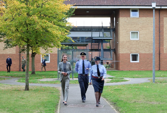 02/10/2025. Coningsby, UK. The Princess of Wales, Royal Honorary Air Commodore, RAF Coningsby during her first visit to the station. Her Royal Highness received an overview of the work of RAF Coningsby on recent operations, including overseas operations to Poland in support of NATO. Her Royal Highness then met a cross-section of Quick Reaction Alert (QRA) personnel and viewed a Quick Reaction Alert Typhoon aircraft. Finally, Her Royal Highness visited a communal space called the ‘Lounge' where The Princess engaged with members of RAF Coningsby's Welfare Team, and a cross-section of RAF Coningsby personnel including aviators from Junior Ranks, to hear about their roles and experiences on site., Credit:Pete Maclaine / Avalon