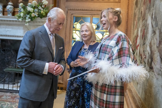 King Charles III meets Siobhan Mackenzie (right) during an event at Dumfries House in Cumnock, to celebrate the King's Foundation's '35 under 35 network', and highlight the creativity and innovation of young changemakers representing the foundation's work across diverse fields. Picture date: Thursday October 2, 2025., Credit:Jane Barlow / Avalon
