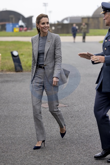 Catherine, the Princess of Wales, Royal Honorary Air Commodore, visits RAF Coningsby in Lincolnshire for her first official engagement at the station. During the visit, Her Royal Highness learned about the station's operational role, met Quick Reaction Alert personnel, viewed a Typhoon aircraft, and toured the new Typhoon Future Synthetic Training facility. She also met families of personnel serving at the base. 02/10/2025, Credit:James Glossop / Avalon