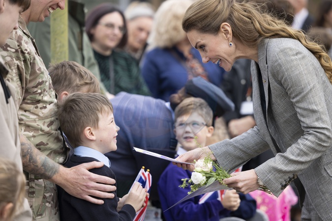 Catherine, the Princess of Wales, Royal Honorary Air Commodore, visits RAF Coningsby in Lincolnshire for her first official engagement at the station. During the visit, Her Royal Highness learned about the station's operational role, met Quick Reaction Alert personnel, viewed a Typhoon aircraft, and toured the new Typhoon Future Synthetic Training facility. She also met families of personnel serving at the base. 02/10/2025, Credit:James Glossop / Avalon