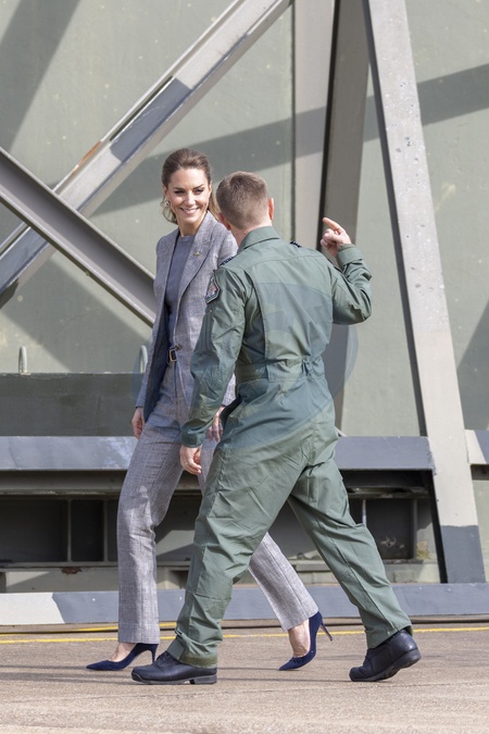 Catherine, the Princess of Wales, Royal Honorary Air Commodore, visits RAF Coningsby in Lincolnshire for her first official engagement at the station. During the visit, Her Royal Highness learned about the station's operational role, met Quick Reaction Alert personnel, viewed a Typhoon aircraft, and toured the new Typhoon Future Synthetic Training facility. She also met families of personnel serving at the base. 02/10/2025, Credit:James Glossop / Avalon