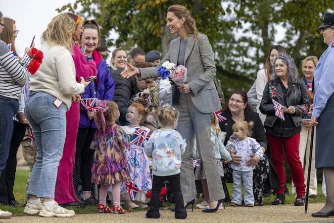 Catherine, the Princess of Wales, Royal Honorary Air Commodore, visits RAF Coningsby in Lincolnshire for her first official engagement at the station. During the visit, Her Royal Highness learned about the station's operational role, met Quick Reaction Alert personnel, viewed a Typhoon aircraft, and toured the new Typhoon Future Synthetic Training facility. She also met families of personnel serving at the base. 02/10/2025, Credit:James Glossop / Avalon