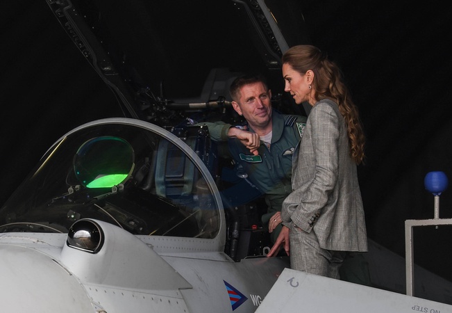 02/10/2025. Coningsby, UK. The Princess of Wales, Royal Honorary Air Commodore, RAF Coningsby during her first visit to the station. Her Royal Highness received an overview of the work of RAF Coningsby on recent operations, including overseas operations to Poland in support of NATO. Her Royal Highness then met a cross-section of Quick Reaction Alert (QRA) personnel and viewed a Quick Reaction Alert Typhoon aircraft. Finally, Her Royal Highness visited a communal space called the ‘Lounge' where The Princess engaged with members of RAF Coningsby's Welfare Team, and a cross-section of RAF Coningsby personnel including aviators from Junior Ranks, to hear about their roles and experiences on site., Credit:Pete Maclaine / Avalon