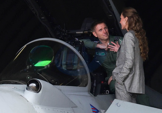 02/10/2025. Coningsby, UK. The Princess of Wales, Royal Honorary Air Commodore, RAF Coningsby during her first visit to the station. Her Royal Highness received an overview of the work of RAF Coningsby on recent operations, including overseas operations to Poland in support of NATO. Her Royal Highness then met a cross-section of Quick Reaction Alert (QRA) personnel and viewed a Quick Reaction Alert Typhoon aircraft. Finally, Her Royal Highness visited a communal space called the ‘Lounge' where The Princess engaged with members of RAF Coningsby's Welfare Team, and a cross-section of RAF Coningsby personnel including aviators from Junior Ranks, to hear about their roles and experiences on site., Credit:Pete Maclaine / Avalon
